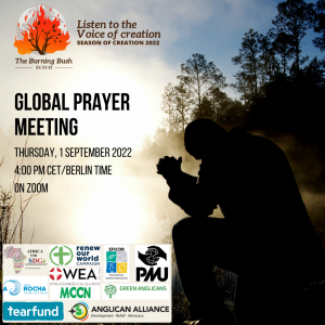 We would like to begin this special time with a global prayer meeting. Join us for 60 minutes of prayer for creation care concerns from different countries around the globe.